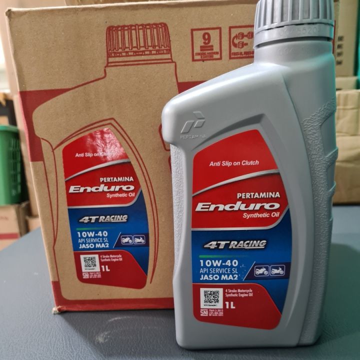 DI SETIAP PRODUK OLI GRATIS BUBEL WARP AGAR TIDAK BOCOR!!!Enduro 4T racing adalah pelumas sintetik motor 4T berkualitas tinggi yang memberikan kinerja tinggi dan akselerasi Prima.Enduro 4T racing diformulasikan untuk memberikan kemampuan anti slip kopling yang cocok untuk pemakaian sehari-hari maupun racing dengan perlindungan mesin yang optimal dengan pelumas Enduro 4T racing.spesifikasi:-untuk motor sport(4T)-SAE 10W-40-SYNTHETIC OIL-1L(1000ml)